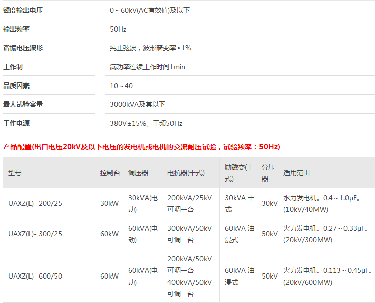 調(diào)感式工頻串聯(lián)諧振耐壓試驗裝置技術(shù)參數(shù)